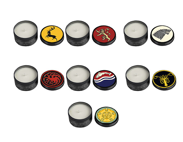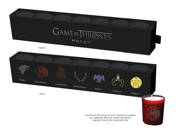 Candle and gift promos for Game of Thrones. Designs were based on the different houses in the TV show. Made for D.L. & Co.